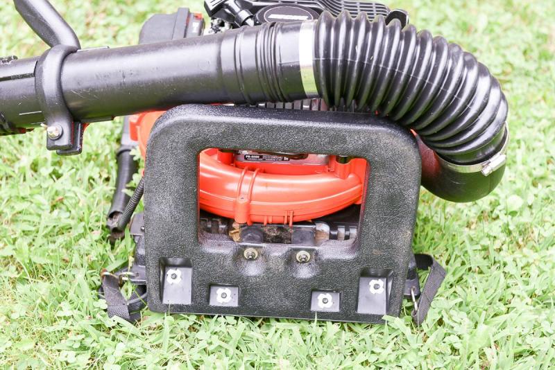 The ECHO PB-500H backpack blower features a 50.8cc professional-grade, 2-stroke engine, delivering 465 CFM and 195 MPH performance. It also includes features like a leaf guard, padded backrest and shoulder straps, and a pleated automotive-style air filter. The blower weighs 23.1 lbs dry. Engine: Type: 2-stroke, professional-grade. Displacement: 50.8 cc. Fuel Capacity: 51.8 oz. Starting System: Standard. Air Filter: Pleated, automotive-style. Performance: Air Volume (cfm-pipe): 465. Maximum Air Speed (mph): 195. Average Air Speed (mph): 163. Comfort and Ergonomics: Padded backrest and shoulder straps: Provide comfort for extended use. Variable speed hip-mounted throttle with cruise control: Offers operator convenience and reduces fatigue.